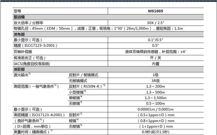 IACS 測角技術、RED-tech EX 測距技術,并且具備兩大特點:高精度、高性價比。高精度無疑是代表著MS 系列全站儀突出的優(yōu)點所在,0.5″的測角精度以及